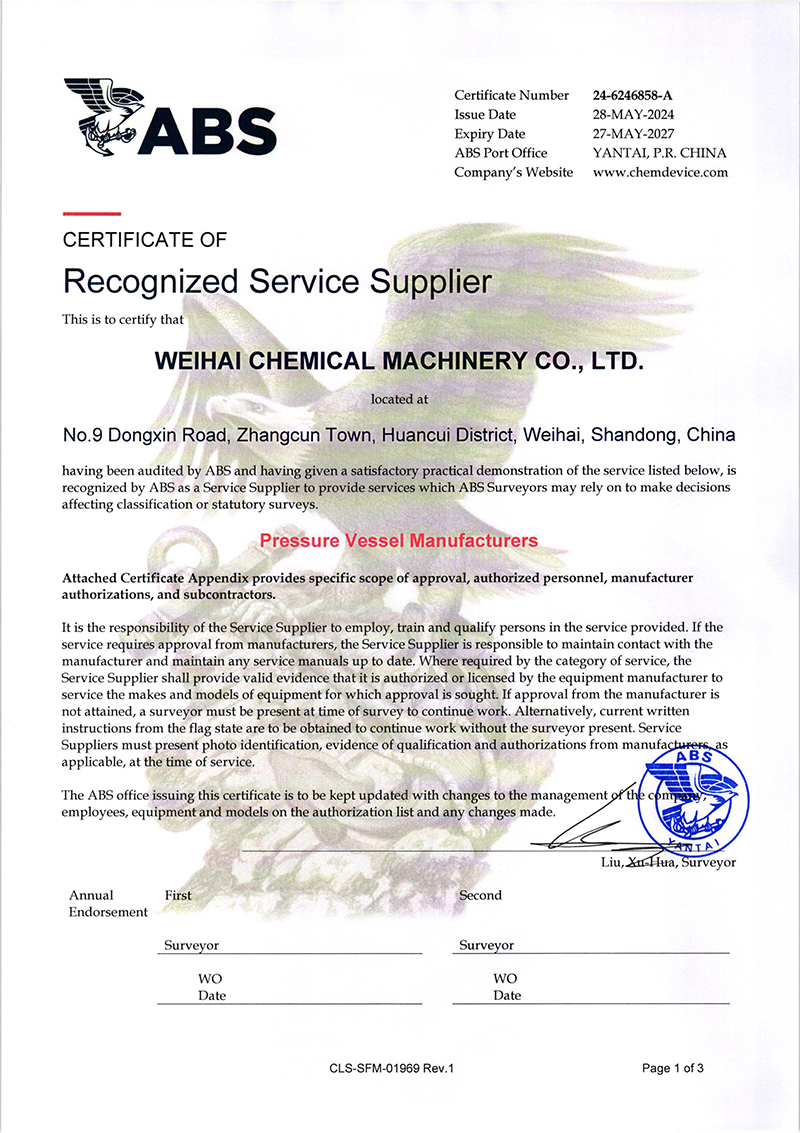 近日威海化工機械有限公司(以下簡稱“威海化機”)壓力容器產品成功獲得了美國船級社(ABS)頒發的權威認證,是繼復合板產品ABS認證后拿到第二張ABS證書,這標志…